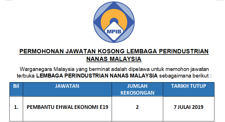 Permohonan Jawatan Kosong Lembaga Perindustrian Nanas Malaysia Pembantu Ehwal Ekonomi E19 Malaysia Kerjaya
