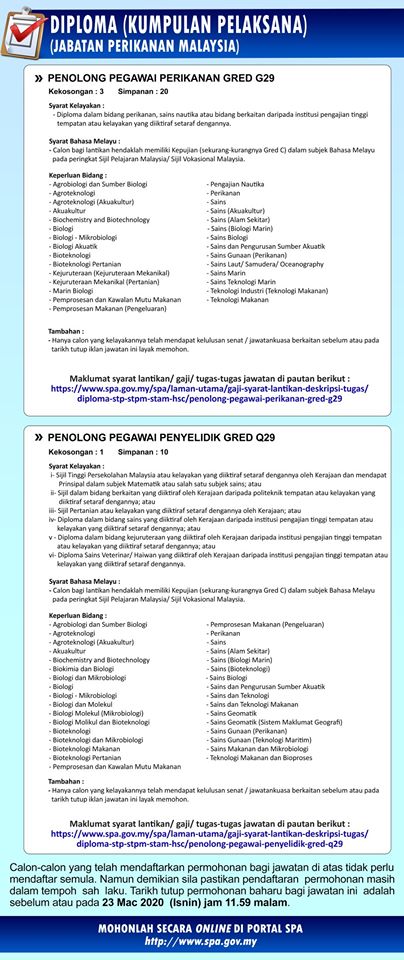 Jawatan Kosong Di Jabatan Perikanan Malaysia 23 Mac 2020 Jawatan Kosong Kerajaan Swasta Terkini Malaysia 2020 2021
