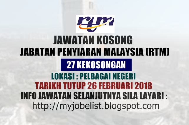 Jabatan Penyiaran Malaysia Rtm Jawatan Kosong Februari 2018