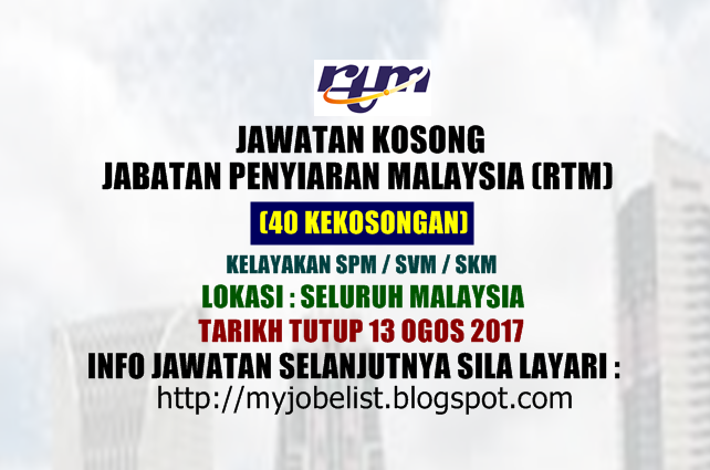 Jawatan Kosong Jabatan Penyiaran Malaysia Rtm 22 Ogos 2017 Jawatan Kosong Kerajaan Swasta Terkini Malaysia 2020 2021