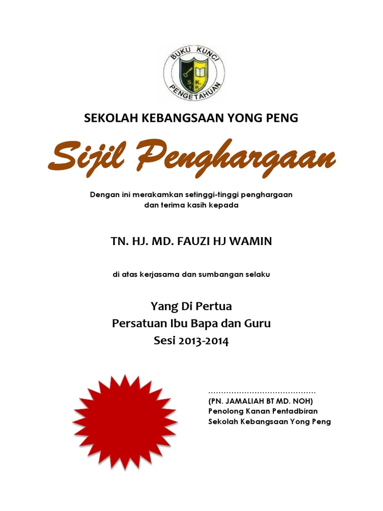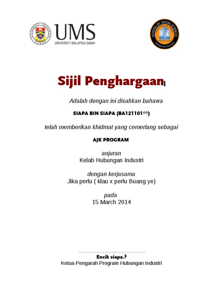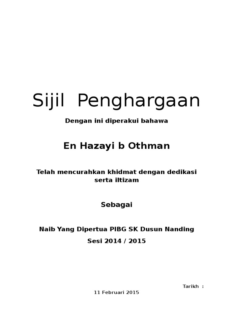 Contoh Sijil Penghargaan Dan Boleh Diedit