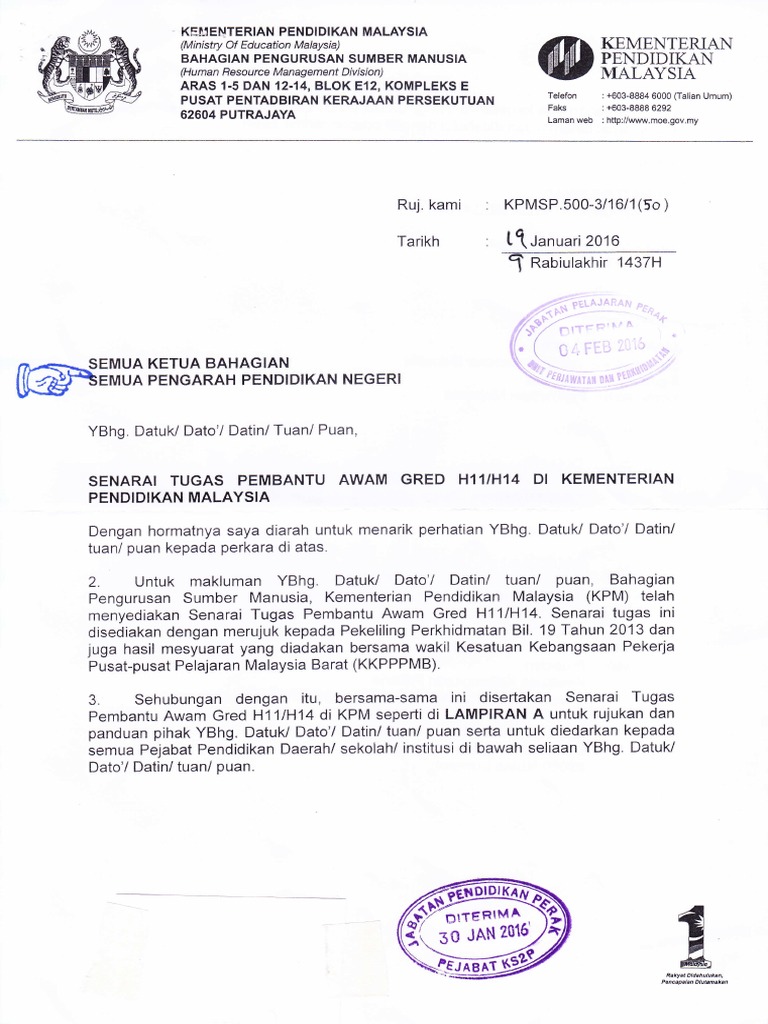 Senarai Tugas Pembantu Awam Gred H11 H14 Di Kpm