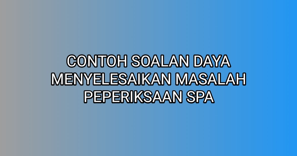Soalan daya menyelesaikan masalah spa. Secara kebiasaannya pihak spa akan mewajibkan calon untuk menduduki peperiksaan online. Ini bertujuan untuk menilai tahap kecenderungan calon dalam menilai sesuatu masalah sebab itu seksyen a atau seksyen b peperiksaan online dikenali sebagai daya menyelesaikan masalah. Soalan matematik psikometrik merupakan soalan yang paling kerap di tanya dalam seksyen daya menyelesaikan masalah dan menginteprasi data peperiksaan online kemasukan ke perkhidmatan awam psee suruhanjaya perkhidmatan awam. Download contoh soalan daya menyelesaikan masalah matematik ptd tahun 2014 2015 2016 2017 di sini.