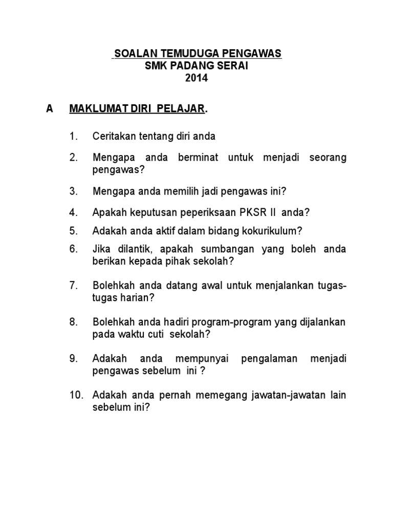 Contoh Soalan Temuduga Pengawas Sekolah Rendah Kecemasan M