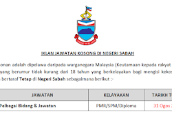 Jawatan Kosong Kerajaan Negeri Sabah Terbuka Spm Diploma Ijazah