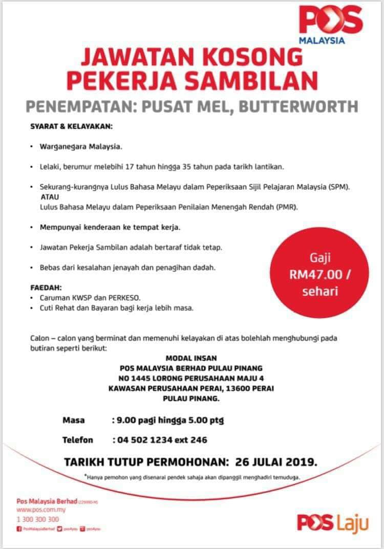 Iklan Jawatan Kosong Pos Malaysia Berhad Pulau Pinang Jawatan Kosong Terkini