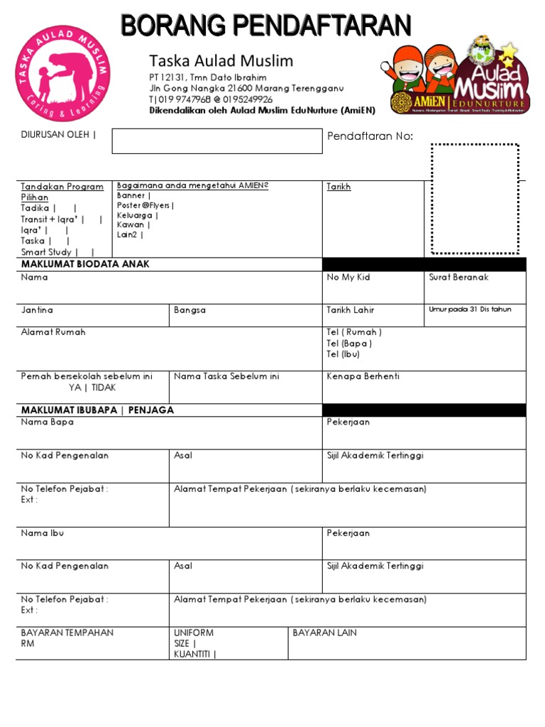 Hasanahkids Tadika Taska Kelasalquran Transit Borang Pendaftaran