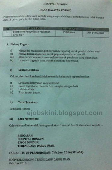 Tugas pembantu penyediaan makanan di hospital. Deskripsi tugas pembantu penyediaan makanan gred n17 memilih memeriksa dan mengasingkan makanan basah mentah dan kering mengikut arahan pegawai yang menerima bekalan makanan daripada pembekal. Hospital kuala penyu dengan ini mempelawa warganegara malaysia yang berkelayakan dan berumur tidak kurang daripada 18 tahun pada tarikh tutup iklan jawatan untuk memohon jawatan yang berikut. Pembantu penyediaan makanan 1. Deskripsi tugas penolong pegawai penyediaan makanan gred c29 spa.